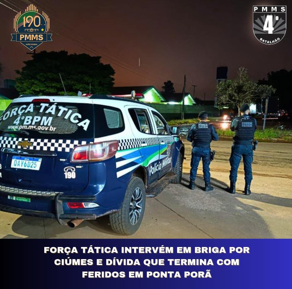 Neste sábado (25), uma confusão motivada por ciúmes e cobrança de dívida terminou em violência física em Ponta Porã. A equipe de Força Tática do 4º Batalhão de Polícia Militar foi acionada pelo COPOM para atender uma ocorrência de vias de fato e dano em uma residência.