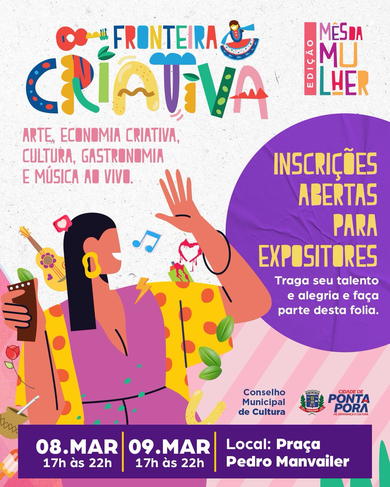 Nada melhor que comemorar o Mês da Mulher abrindo mais uma edição da Fronteira Criativa. Nesta sexta-feira, na Praça Pedro Manvailler, vai rolar o melhor da cultura fronteiriça.