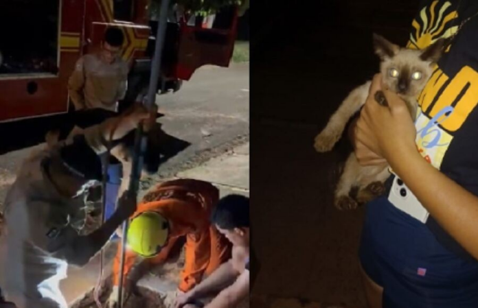 Um gatinho foi resgatado na noite desta quinta-feira (4), após cair em uma fossa de uma residência, no bairro Monte Fuji, na cidade de Naviraí.