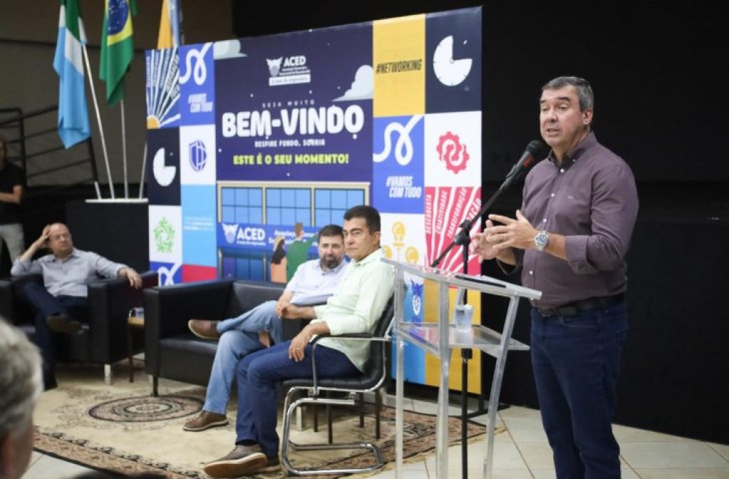 A apresentação do cenário econômico do Estado foi feito pelo governador neste sábado (28), na sede da Associação Comercial e Empresarial de Dourados.