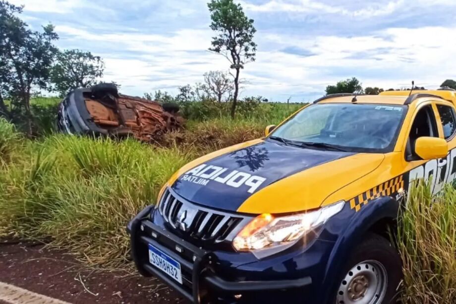 Com o impacto, o Spin saiu da pista e tombou às margens da rodovia. Vários tabletes de droga foram arremessados do carro e ficaram espalhados pela rodovia.