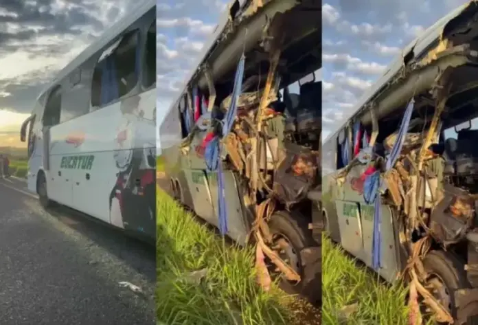 Uma empresa de usina de energia solar cedeu um ônibus para transportar os passageiros que não se feriram até a rodoviária do município.