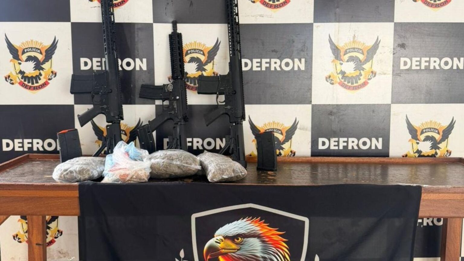 O suspeito, preso em flagrante por tráfico de drogas e comércio ilegal de armas de fogo, foi conduzido para a Defron. Os fuzis, carregadores e a droga foram apreendidos.