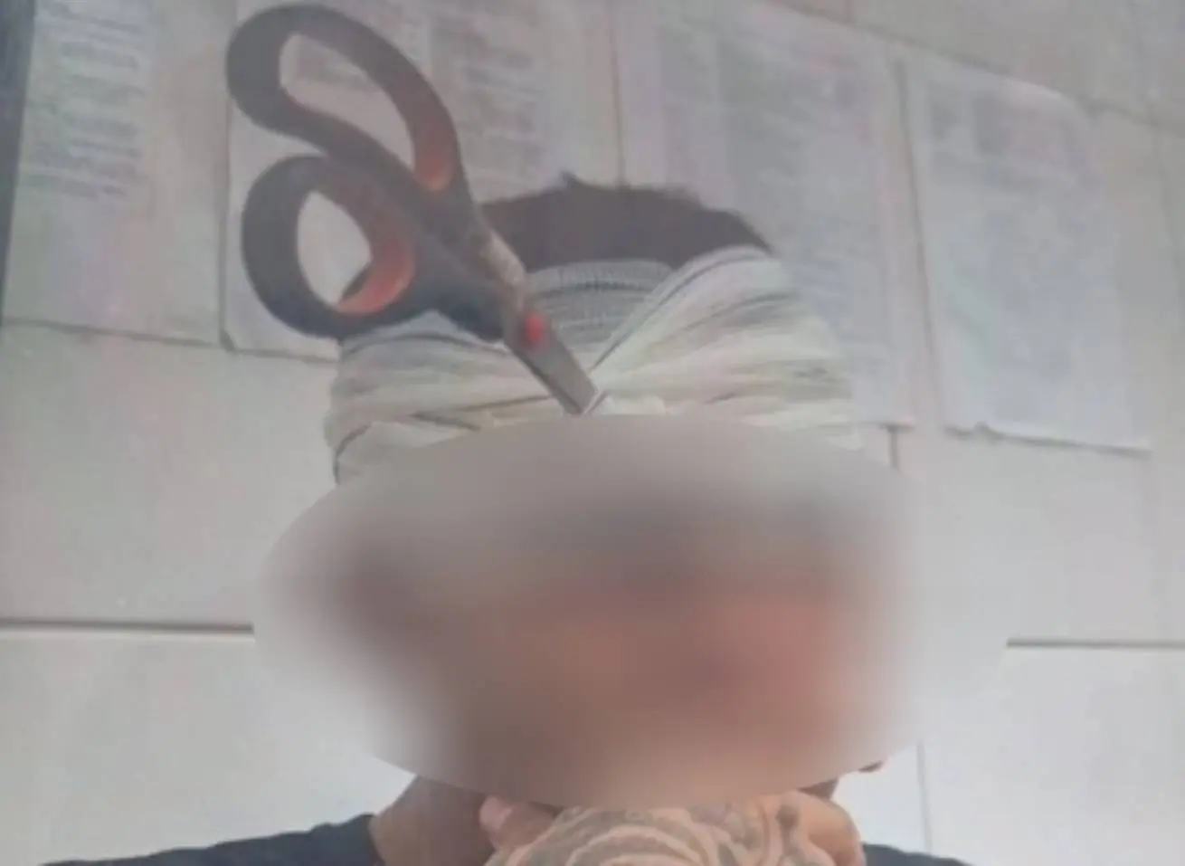 Jovem ficou com a tesoura cravada no rosto (reprodução)