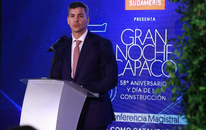 El presidente de la República, Santiago Peña, durante su participación en la celebración del 58.° aniversario de la Cámara Paraguaya de la Industria de la Construcción (Capaco), destacó el 20 % de crecimiento en el sector privado en el transcurso de este 2025, impulsado en gran medida por el rubro de la construcción.
