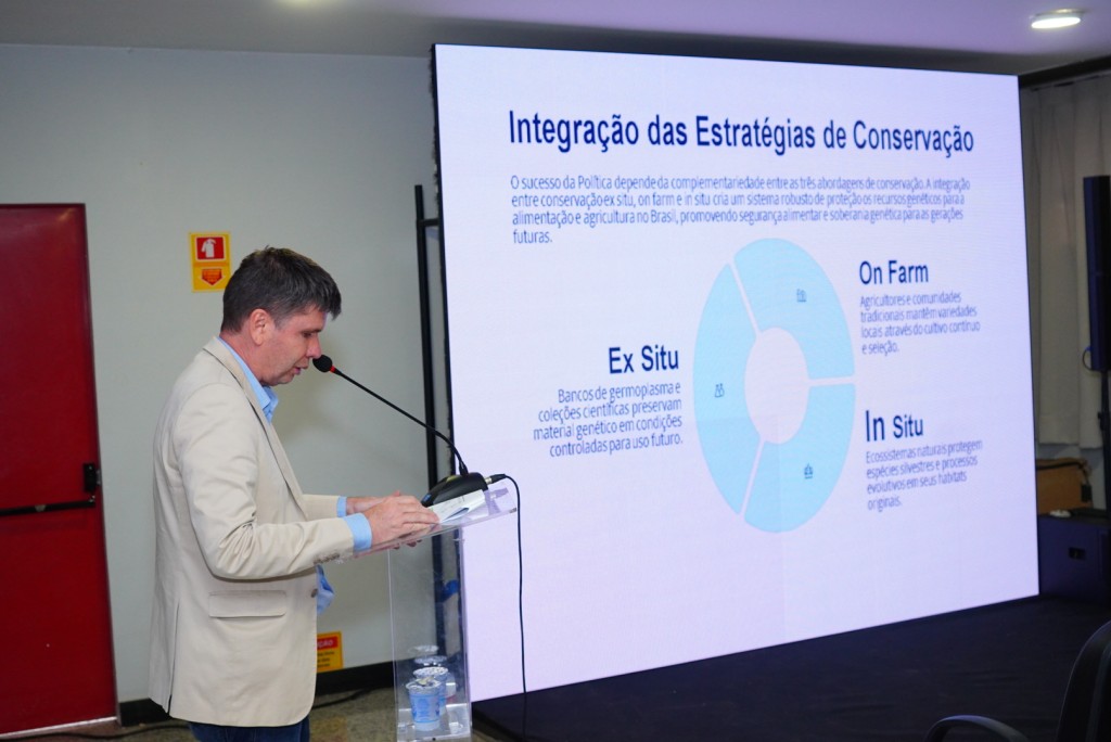 Durante a apresentação, o representante da coordenação de Recursos Genéticos para a Alimentação e Agricultura do Departamento de Inovação do Mapa, Paulo Mocelin, destacou a importância estratégica do tema.