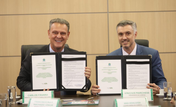 Com o objetivo de fortalecer a sanidade agropecuária no país, o ministro da Agricultura e Pecuária, Carlos Fávaro, e o presidente do Conselho Federal de Engenharia e Agronomia (Confea), Vinicius Marchese, assinaram, nesta quarta-feira (26), um Acordo de Cooperação Técnica voltado ao aprimoramento do Sistema Unificado de Atenção à Sanidade Agropecuária (Suasa). A iniciativa prevê a integração de ações institucionais, a ampliação da capacitação técnica de profissionais e o intercâmbio de informações para fortalecer a defesa agropecuária brasileira.
