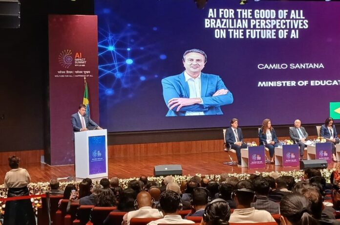 Em agenda oficial na Índia ao lado do presidente da República, Luiz Inácio Lula da Silva, o ministro da Educação, Camilo Santana, participou nesta sexta-feira, 20 de fevereiro, em Nova Délhi, do painel “Inteligência Artificial para o Bem de Todos – Perspectivas do Brasil sobre o Futuro da IA”, realizado na Cúpula sobre o Impacto da Inteligência Artificial. No encontro, Santana apresentou as políticas educacionais brasileiras em governança digital e inteligência artificial e falou sobre a criação do Referencial para Desenvolvimento e Uso Responsáveis de Inteligência Artificial na Educação, que será lançado pelo Ministério da Educação (MEC) em breve.