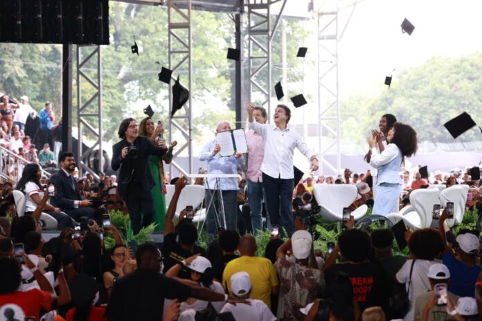 Diante de milhares de estudantes e ex-cotistas presentes na cerimônia, o presidente Lula ressaltou que as políticas de inclusão no ensino superior demonstram o potencial da juventude brasileira quando tem acesso a oportunidades. “Não há fronteiras, muros ou cercas quando existe um governo que abre as portas para que vocês mostrem aquilo que querem ser. O que nós fizemos foi apenas dar a oportunidade. O que vocês fizeram foi provar que, tendo oportunidade, qualquer pessoa neste país pode chegar aonde quiser”, afirmou.