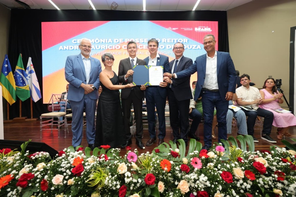 O ministro da Educação, Camilo Santana, empossou, nesta terça-feira, 3 de março, André Maurício Conceição como novo reitor da Universidade Federal de Sergipe (UFS). A cerimônia ocorreu no auditório do Bloco da Reitoria da instituição, na Avenida Marechal Rondon. A agenda da comitiva do Ministério da Educação (MEC) no estado também contou com uma visita às obras do Departamento de Ecologia e às instalações do Laboratório de Flavor e Análises Cromatográficas. Ao todo, o MEC investe cerca de R$ 125,3 milhões na UFS por meio do Novo Programa de Aceleração do Crescimento (Novo PAC).