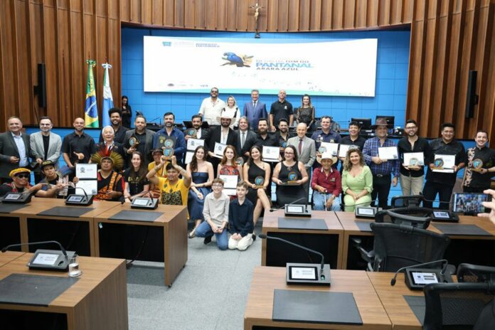 A Assembleia Legislativa de Mato Grosso do Sul (ALEMS) celebrou, na noite desta quarta-feira (26), a força da música sul-mato-grossense e de seus intérpretes na Sessão Solene de Concessão da Medalha “Tom do Pantanal – Arara Azul”, dedicada ao Dia do Músico, comemorado oficialmente em 22 de novembro. Instituída pela Resolução 12/2010, a homenagem proposta pelo deputado Roberto Hashioka (União) reconhece a relevante contribuição do profissional da área no contexto cultural sul-mato-grossense. Para o proponente da cerimônia, a homenagem celebra o talento, a dedicação e o papel fundamental dos artistas na difusão da cultura e das tradições sul-mato-grossenses.