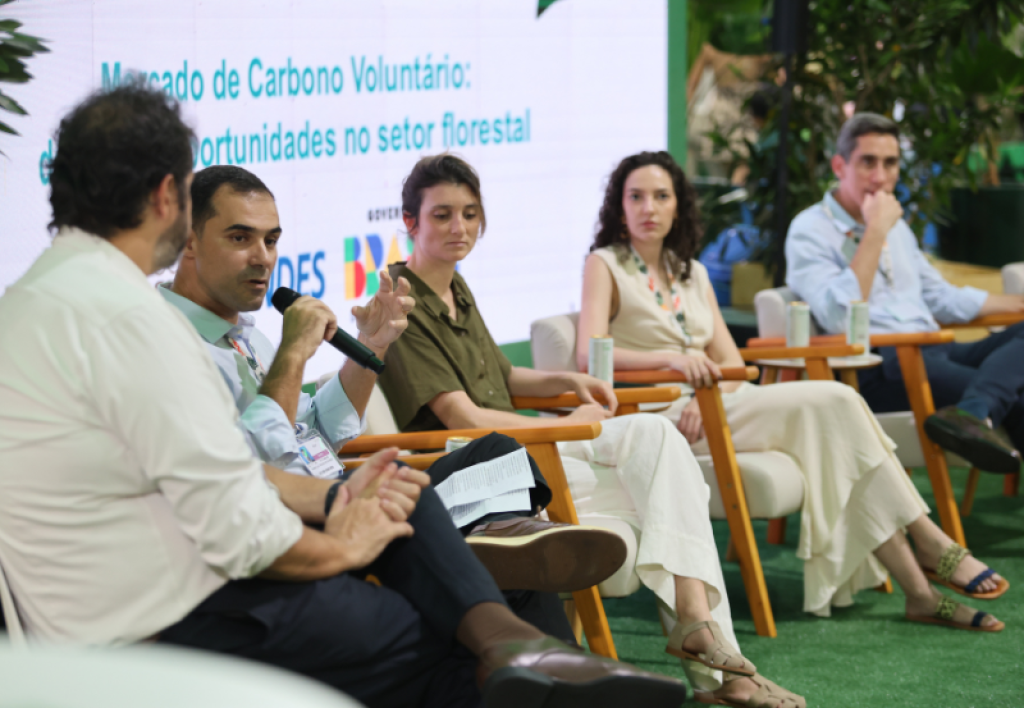 O Ministério do Meio Ambiente e Mudança do Clima (MMA) participou, na última sexta-feira (15/11), do debate “Mercado de Carbono Voluntário: desafios e oportunidades no setor florestal”, realizado no Pavilhão BNDES, na Zona Verde da COP30. A mesa reuniu representantes do governo federal, instituições financeiras e do setor de certificação para discutir os caminhos para fortalecer o mercado voluntário de carbono no país e ampliar sua integridade.