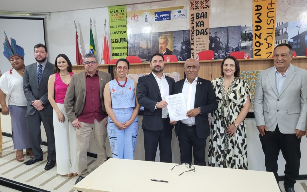 A assinatura ocorreu no auditório do Instituto de Ciências Jurídicas (ICJ/UFPA) e contou com a presença do reitor da instituição, professor Gilmar Pereira da Silva; e do diretor de Promoção do Acesso à Justiça da SAJU/MJSP, Pedro Henrique Martinez.