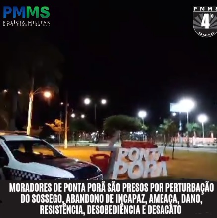 Moradores de Ponta Porã são presos por perturbação do sossego, abandono de incapaz, ameaça, dano, resistência, desobediência e desacato