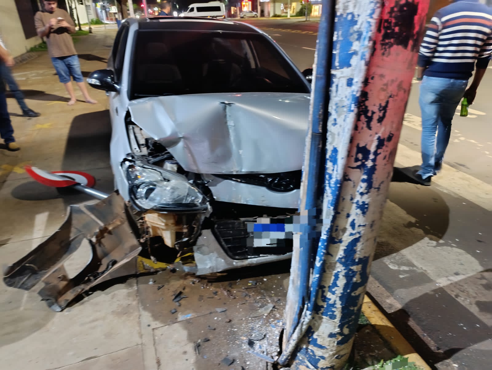 O acidente aconteceu por volta das 22h30, quando o motorista de um Hyundai I30, que seguia no sentido norte-sul, perdeu o controle da direção e colidiu primeiramente contra um veículo Fiat Strada estacionado. Com o impacto, o carro estacionado foi arremessado para frente, atingindo a estrutura metálica de um toldo de aproximadamente 4,5 metros. O veículo conduzido pelo autor ainda bateu em uma placa de sinalização de velocidade (30 km/h) e em um poste de iluminação pública, causando danos materiais significativos.