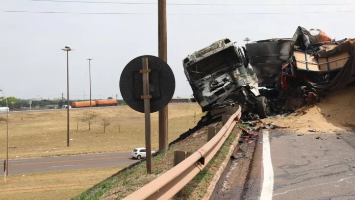 Segundo as informações, ao desviar-se da carreta-caçamba, ele colidiu com a carreta branca que seguia no sentido contrário da pista. A PRF acredita que o condutor morreu no momento da colisão.