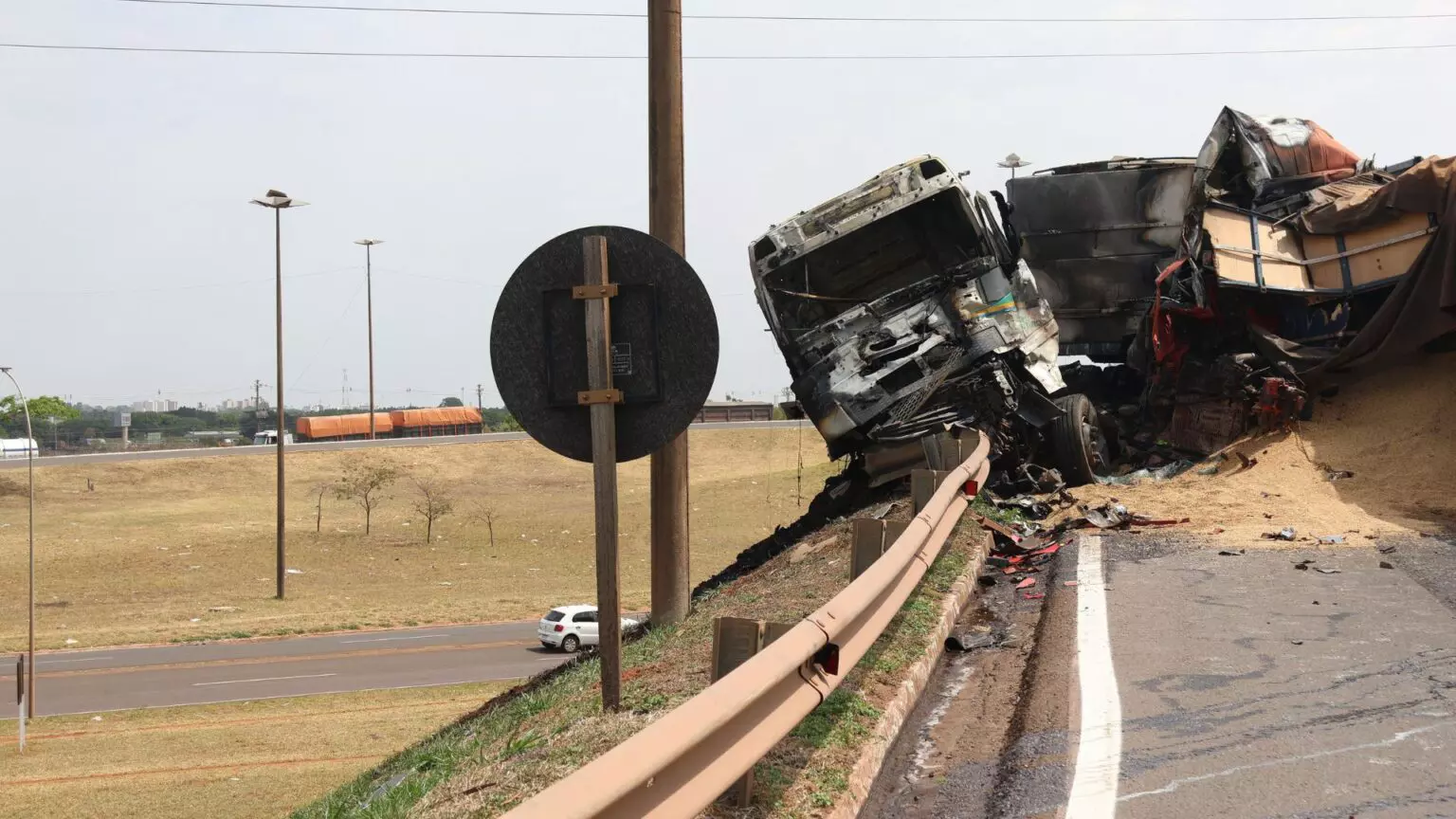 O motorista da carreta branca, que transportava fertilizantes, foi socorrido e encaminhado para atendimento médico. O estado de saúde dele não foi informado.