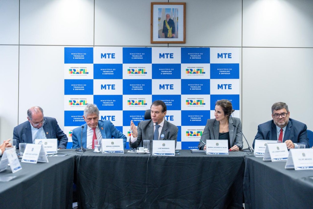 O encontro foi realizado no edifício sede do Ministério do Trabalho e Emprego (MTE), em Brasília, e contou ainda com a participação de representantes de sindicatos brasileiros de base e da chefe da Assessoria Especial de Assuntos Internacionais do MTE, Maíra Lacerda e Silva.
