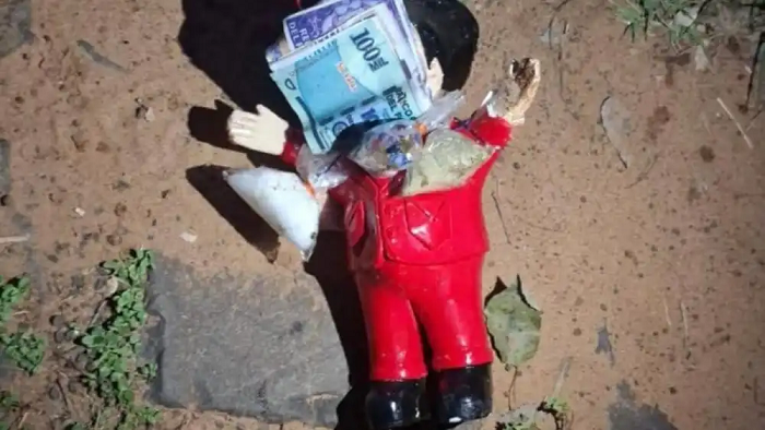 Según los testimonios recogidos en el lugar, una mujer fue vista colocando muñecos y otros objetos considerados “extraños” frente a un local comercial del barrio Centro de Curuguaty.