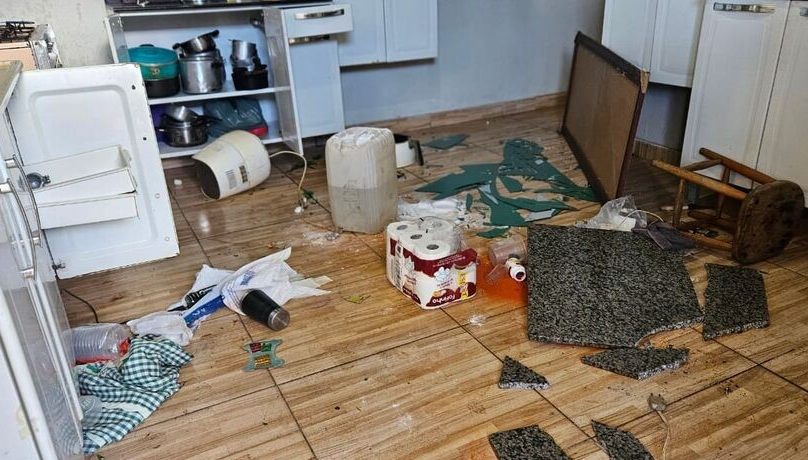 A suspeita destruiu os móveis de todos os cômodos da casa, jogou as roupas no chão espalhadas do lado de fora da casa e furou os quatro pneus do carro estacionado na garagem.