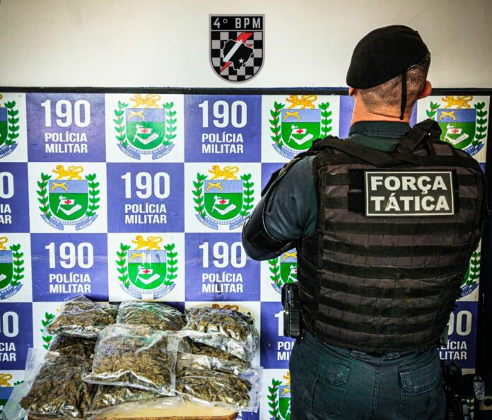 Durante a verificação inicial, em uma das bolsas foram encontrados três volumes contendo maconha em seu interior. Posteriormente, janta delegacia e com apoio de uma policial feminina, foi realizada a busca pessoal, que resultou na apreensão de mais sete pacotes da mesma droga. No total, foram recolhidos aproximadamente 2,9 quilos de entorpecentes.