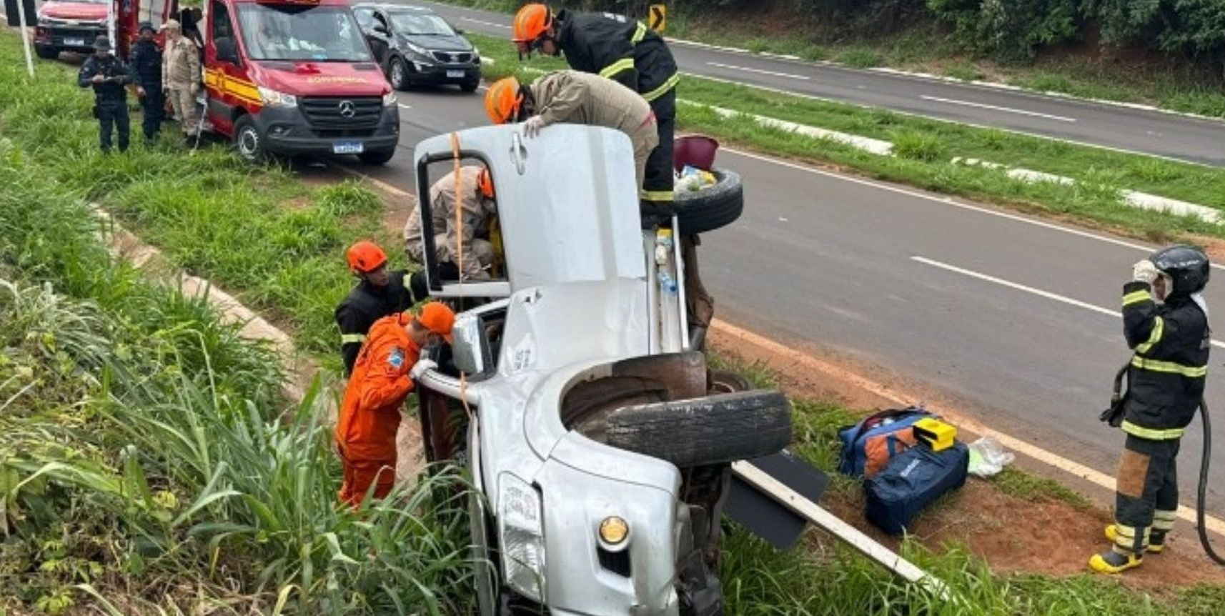 Ao dormir, o motorista acabou perdendo o controle da direção do veículo, que saiu da pista e capotou, parando na contramão da rodovia. Três pessoas ocupavam a caminhonete. O motorista e um passageiro ficaram em estado de choque. Já uma mulher, que estava no banco traseiro, ficou presa nas ferragens.