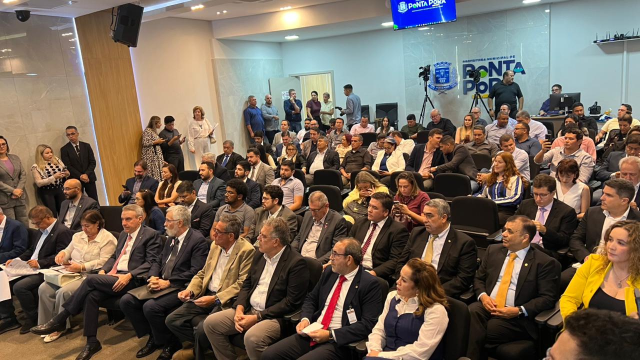 A Prefeitura de Ponta Porã sediou na tarde desta segunda-feira (27) uma reunião com parlamentares do Brasil e do Paraguai para discutir políticas de integração fronteiriça e fortalecimento das relações bilaterais. O encontro, realizado no auditório da Prefeitura, teve início por volta das 14h30 e foi aberto pelo prefeito Eduardo Campos, com mediação da secretária municipal de Governo e Comunicação, Paula Consalter Campos.