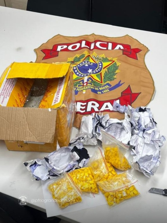 Natal/RN. A Polícia Federal apreendeu, na manhã da última quarta-feira (19/11), cerca de 1.000 comprimidos de substância entorpecente sintética no centro de triagem dos Correios, em ação conjunta com a equipe de segurança postal e com o apoio de cães detectores.