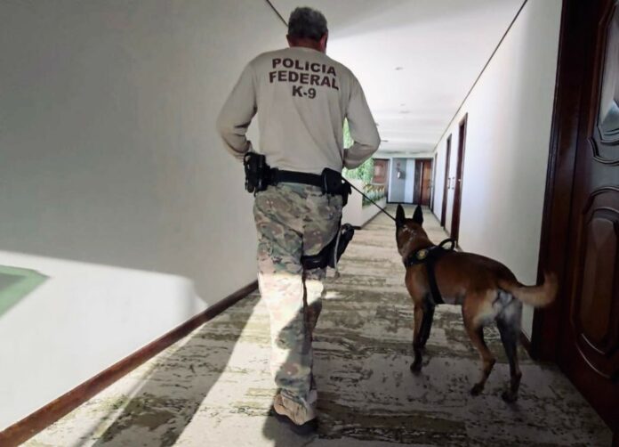 A ação, que contou com o apoio de cães farejadores, integra o conjunto de medidas preventivas adotadas pela Polícia Federal para garantir a segurança das autoridades e delegações durante o evento.