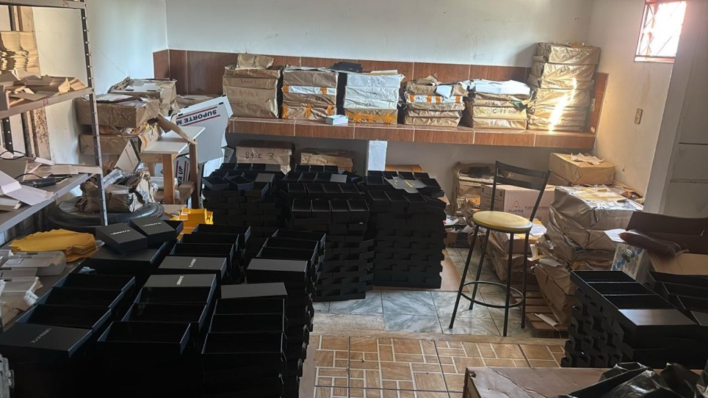 Durante as apurações, também foi identificado um imóvel onde seriam produzidas embalagens e caixas utilizadas para conferir aparência de regularidade aos produtos comercializados, principalmente por meio de plataformas de comércio eletrônico.