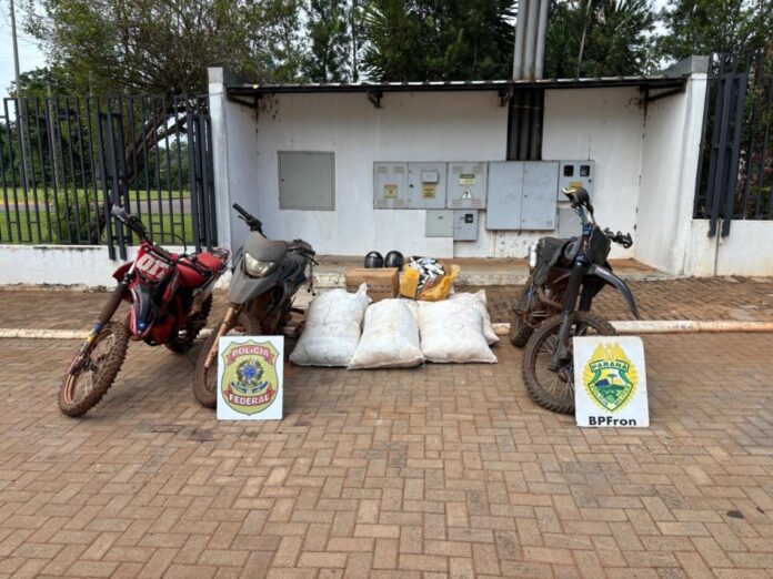 Guaíra/PR. Nesta sexta-feira (17/4), durante ação integrada no âmbito da Operação Protetor, a Polícia Federal e os policiais militares do BPFron/PM/PR apreendeu três motocicletas em Guaíra/PR. Os veículos estavam carregados com produtos de origem estrangeira.