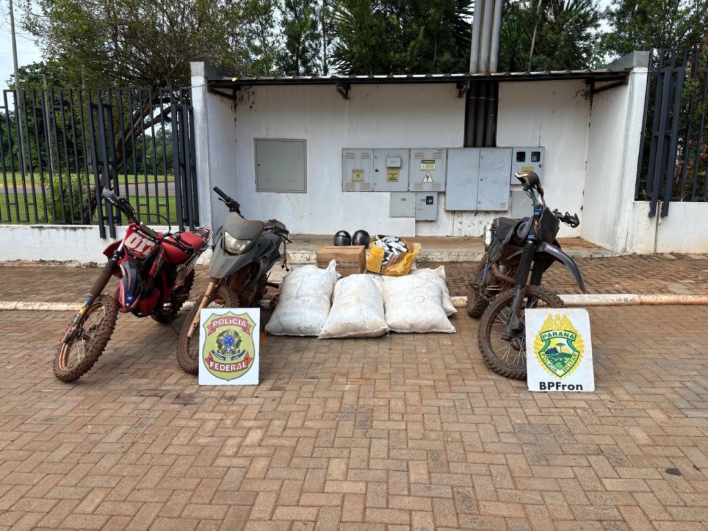 No total, foram apreendidas três motocicletas, uma caixa de cigarros paraguaios, aproximadamente 350 kg de agrotóxicos (herbicidas e inseticidas) de origem paraguaia, além de um volume contendo substâncias anabolizantes e canetas emagrecedoras.