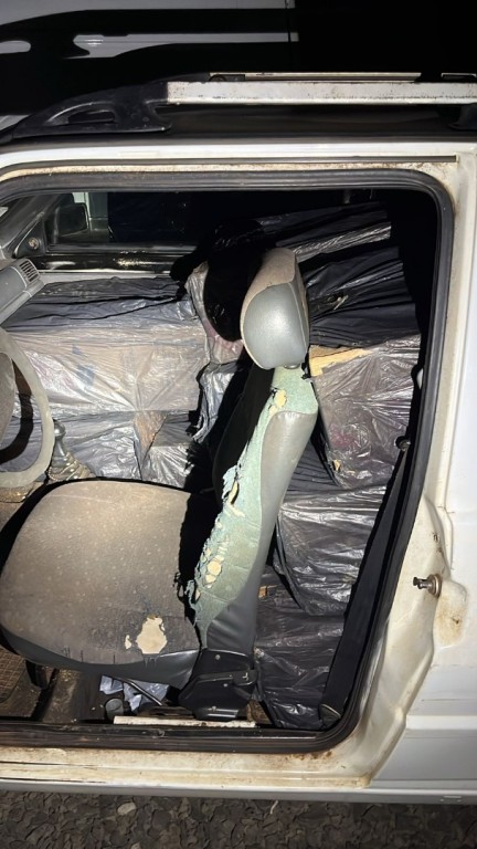 Após acompanharem a movimentação suspeita, os policiais localizaram um veículo abandonado com 15 caixas de cigarros estrangeiros, o que totalizou 7.500 maços.