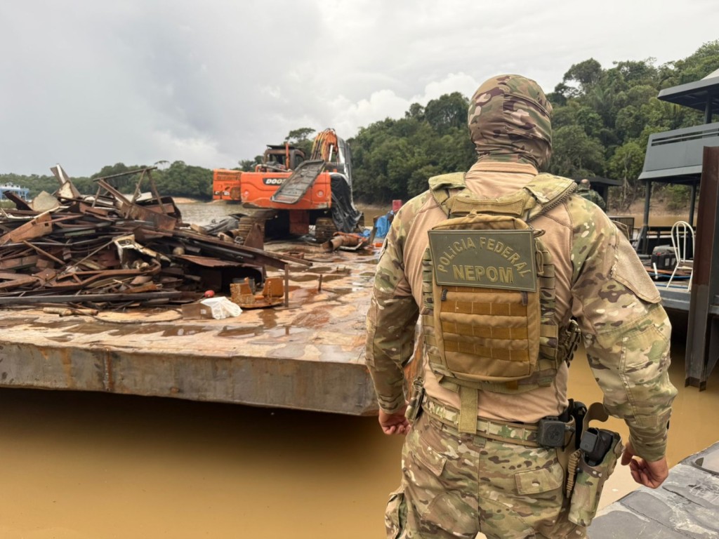 Manaus/AM. A Polícia Federal, em ação conjunta com a 2ª Companhia de Operações Fluviais do Batalhão Ambiental da Polícia Militar do Amazonas, realizou, na última quinta-feira (18/12), uma operação nas proximidades da Ponte do Rio Negro, com o objetivo de reprimir atividades ligadas ao garimpo ilegal na região.