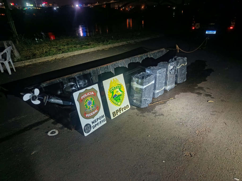 A droga e a embarcação foram encaminhadas à Delegacia de Polícia Federal em Foz do Iguaçu para os procedimentos cabíveis.