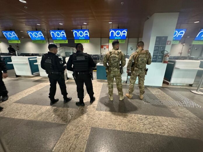 Belém/PA e Macapá/AP. Na tarde desta quinta-feira (5/2), a Polícia Federal e as Polícias Militares do Amapá e Pará foram acionadas para realizar varredura em uma aeronave, após a identificação de artefato suspeito em seu interior. O objeto fora encontrado pela tripulação em um bagageiro. O avião fez conexão em Belém e seguiu para Macapá.