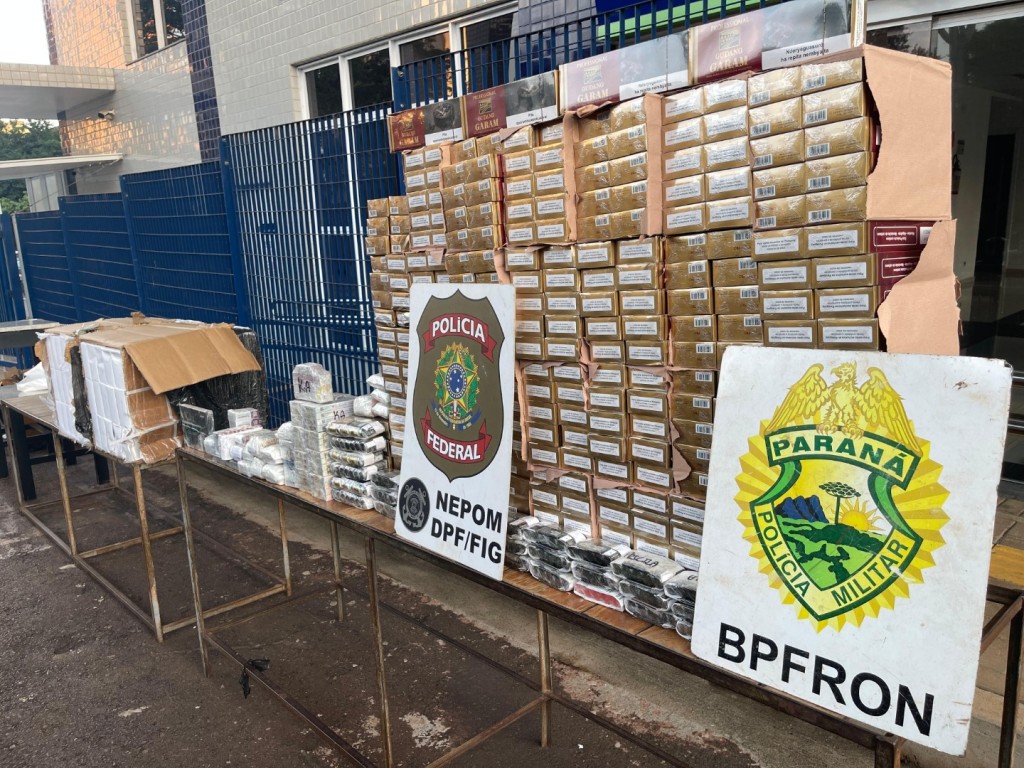 No interior do veículo foram encontrados cinco volumes contendo cigarros, óculos e anabolizantes. O automóvel e os produtos apreendidos foram encaminhados à Receita Federal para as providências legais cabíveis.