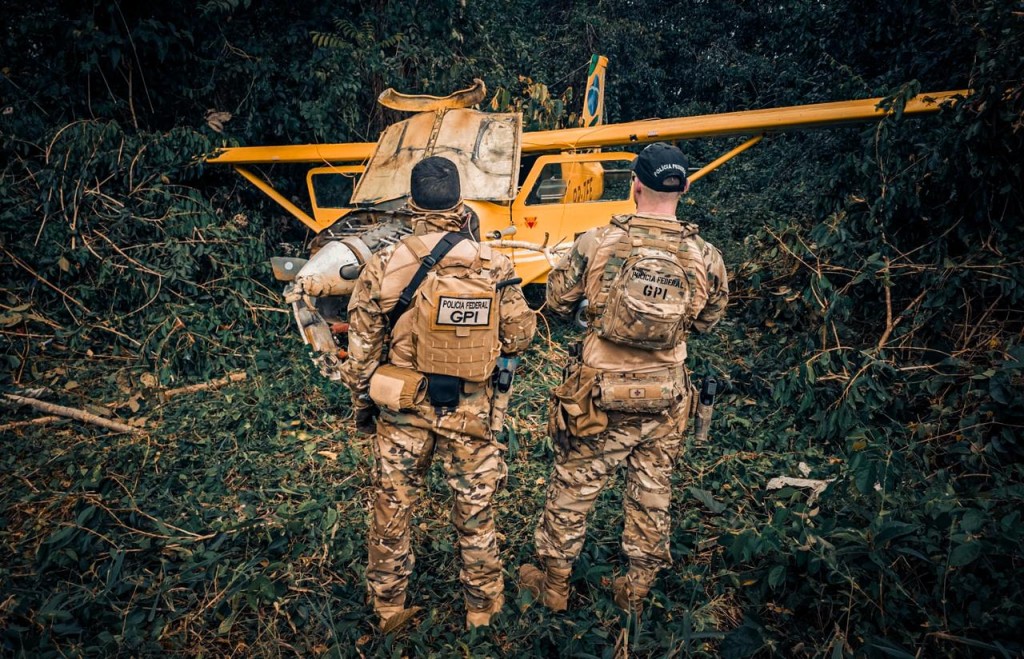 No local, foi constatado que o avião havia sido modificado para apoiar a logística criminosa. A aeronave foi inutilizada pela equipe ainda na área da ação. As condições observadas reforçam indícios de que o equipamento era empregado para abastecimento e para transporte de materiais relacionados à atividade criminosa.