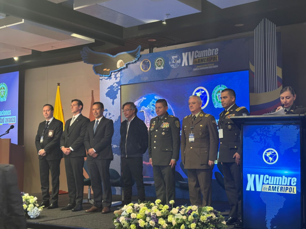 O Presidente da Colômbia Gustavo Petro participou da cerimônia, acompanhado do Ministro da Defesa colombiano, destacando a relevância do evento para a segurança regional, em painel que contou também com a participação do Delegado e Adido Fábio Mertens, representando a Polícia Federal e a Secretaria Executiva da Ameripol.