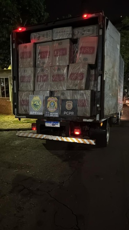 Foz do Iguaçu/PR. Uma ação conjunta entre policiais federais, policiais civis e policiais militares resultou na apreensão de um caminhão baú carregado com aproximadamente 100 mil maços de cigarros de origem paraguaia, na noite de segunda-feira (23/3), na área rural de Santa Helena.