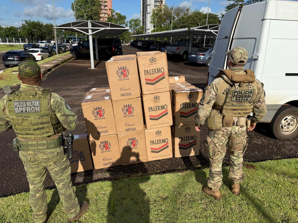 Foz do Iguaçu/PR. Nesta terça-feira (18/11), uma ação conjunta entre a Polícia Federal, a Polícia Militar e a Marinha do Brasil resultou na apreensão de 54 caixas de cigarros de origem estrangeira e na prisão de uma mulher por receptação de mercadoria ilícita.