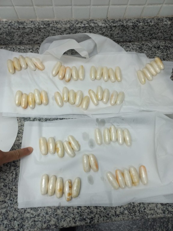 Durante fiscalizações de rotina, policiais federais efetuaram prisão em flagrante após o preso confirmar a ingestão das cápsulas.