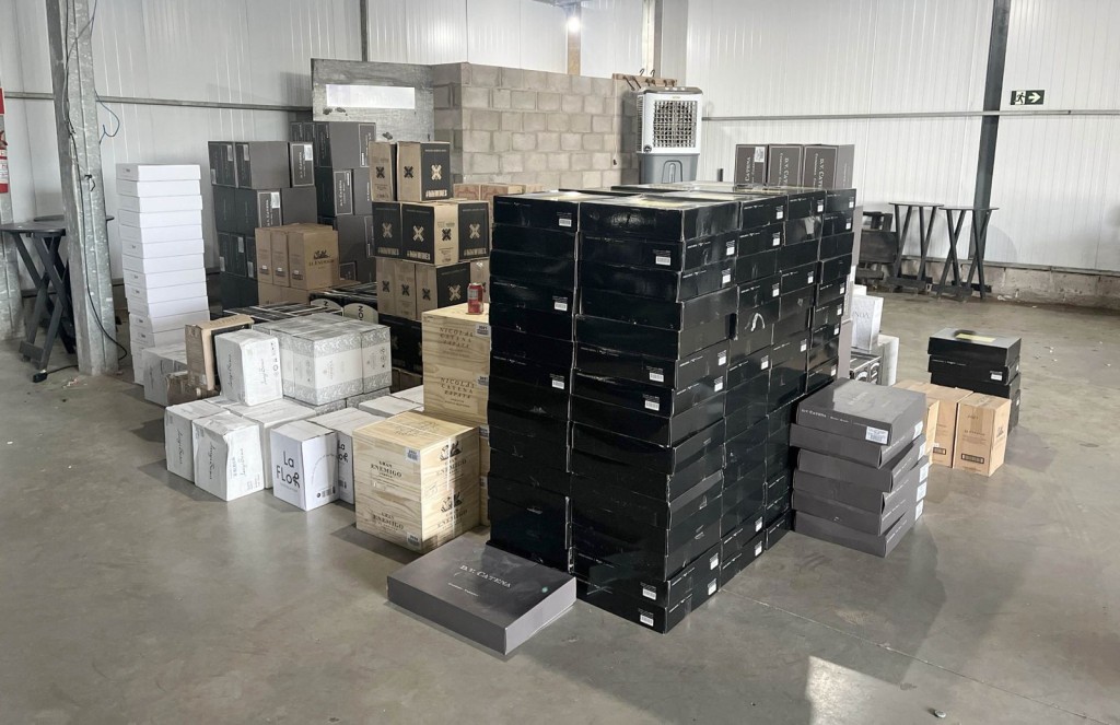 Os policiais encontraram a mercadoria contrabandeada no interior de dois automóveis que foram interceptados em um depósito clandestino, totalizando, aproximadamente, 600 caixas de vinhos estrangeiros de diversas marcas.