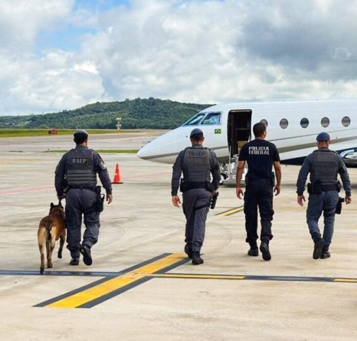 A operação contou com o emprego de policiais federais e de policiais militares do Batalhão de Ações Especiais de Polícia (BAEP), incluindo equipes com cães de detecção para inspeção de aeronaves, de hangares e demais dependências aeroportuárias.