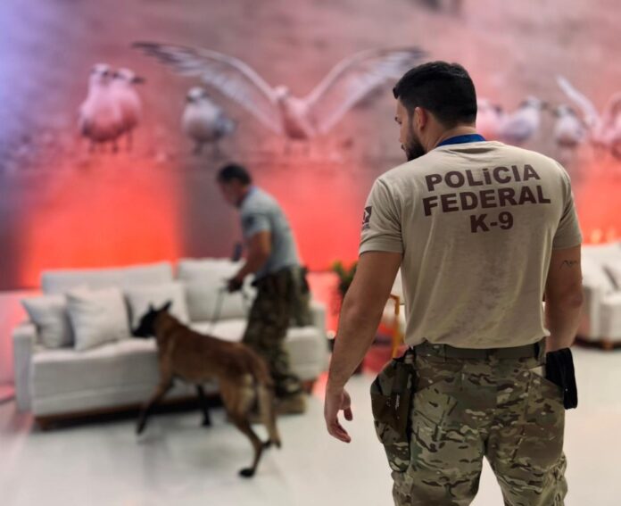 A ação mobiliza dezenas de policiais federais especializados e conta com o apoio de cães farejadores, empregados na detecção preventiva de artefatos e de substâncias ilícitas.