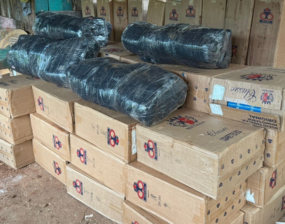 Foz do Iguaçu/PR. Uma ação integrada entre a Polícia Federal, a Receita Federal do Brasil e a Polícia Militar do Paraná resultou na apreensão de cigarros contrabandeados e de entorpecentes, na cidade de Foz do Iguaçu/PR, na terça-feira (7/4).
