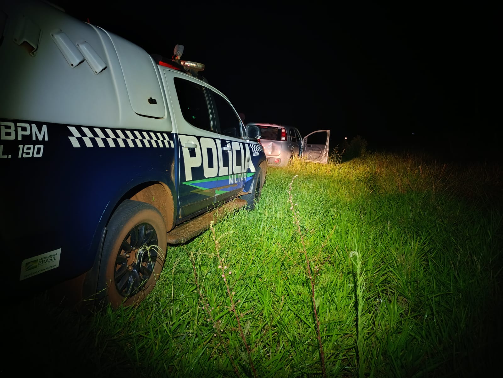 A ocorrência foi registrada quando a equipe policial avistou um veículo trafegando em alta velocidade no trecho de acesso à Vila do Secador.