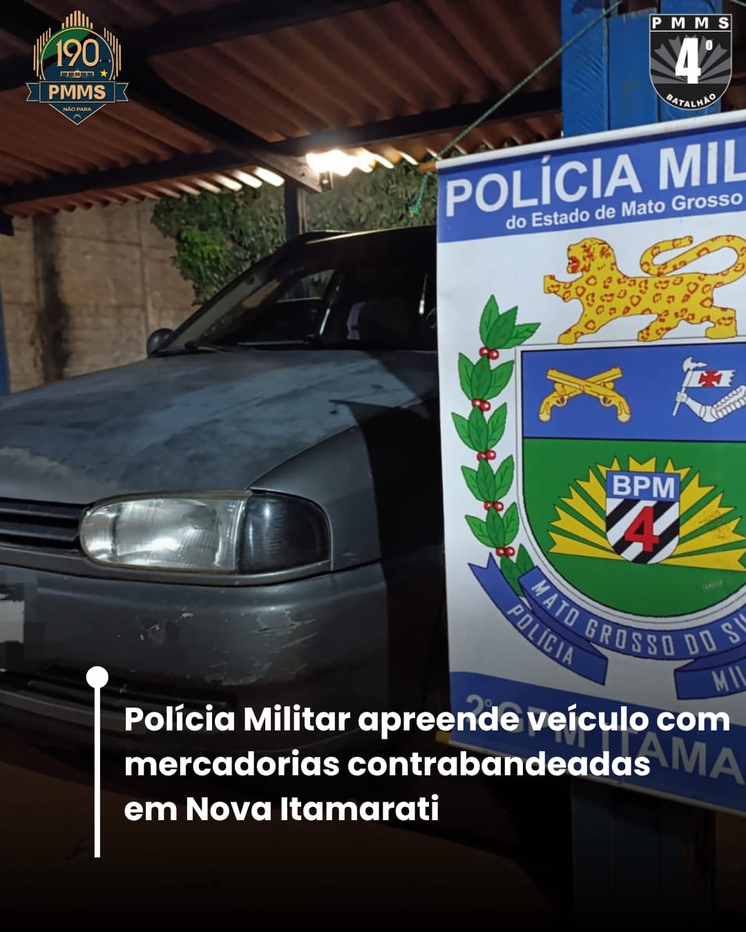 Policiais Militares do Distrito de Nova Itamarati, apreenderam um veículo carregado com produtos de origem estrangeira sem documentação fiscal, configurando o crime de contrabando ou descaminho.