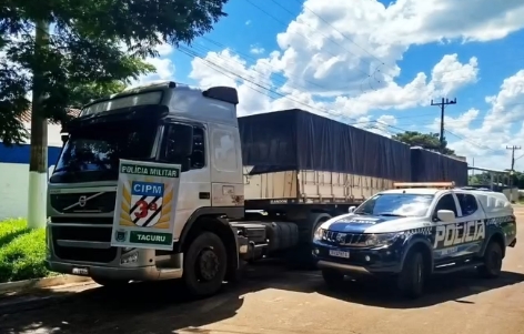 Por volta das 11h30min desta quinta-feira (05/02/2026), durante patrulhamento ostensivo e preventivo no município de Tacuru/MS, policiais militares realizaram a abordagem de um caminhão Volvo, cor prata, para fins de fiscalização de trânsito.