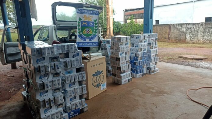 A guarnição Policial Militar do Assentamento de Nova Itamarati, apreendeu na manhã desta quinta-feira (31/03) veículo com carga de contrabando de cigarros.